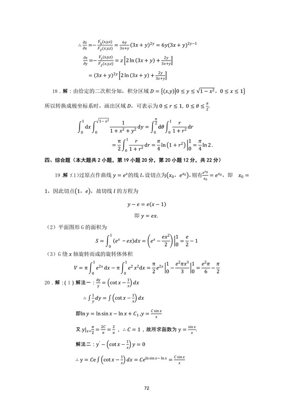 广东省2011年专插本招生考试高等数学真题答案: